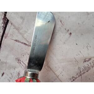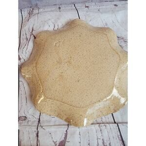 Studio Art Pottery Wavy Dish 7in Tan Pressed Leaf & Berries Pattern Signed on the bottom but can't make it out. Has a stainless strawberry spreader. In great condition NO chips or cracks