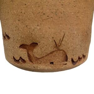 Studio Art Pottery Whale Vase Salt Glaze Blue Stripe 6”