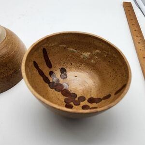 Studio Art Pottery Wheel Thrown Yellow Brown (2) Bowls. Signed.