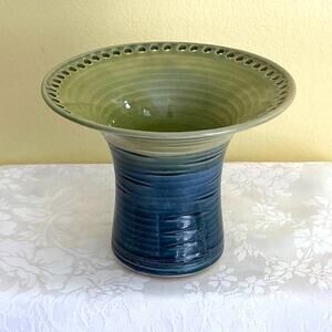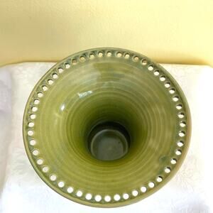 Signed Studio Art Pottery Wide Pierced Rim Vase / Decor / Earring Holder. This beautiful piece is multifunctional as a vase, organizer and/or displayed alone as a decorative art piece. It is in excellent condition with no chips or cracks. Please see pictures for condition and approximate size reference.