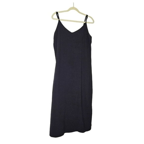 Studio B Bobeau Black Linen Side Slit Dress Midi Sleeveless Linen Blend Staple L