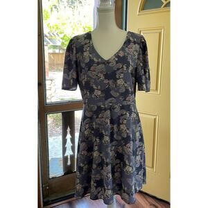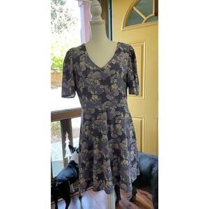 Studio B by Babeau Short Flutter Sleeve Womens Gray Dress with Pink Flowers