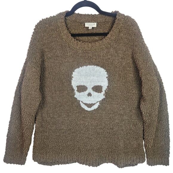 Studio B by Bobeau Mettalic Skull Sweater Women’s SZ XL Brown/Gray Boucle EUC