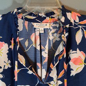 Studio B by Bobeau - Navy Peach Cream Floral Short Sleeve Top, Size Medium.