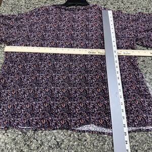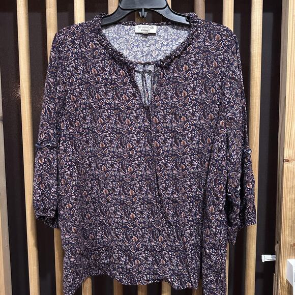 Studio B by Bobeau Shirt Plus 1X Blue Brown Pink Floral Boho Peasant Tunic Top