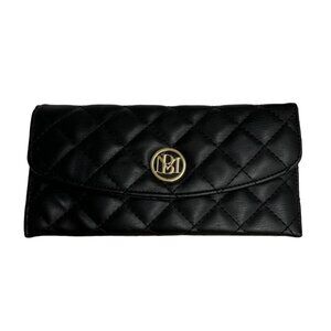 Studio Badgley Mischka Diamond Quilted Vegan Leather Clutch Long Wallet BLK