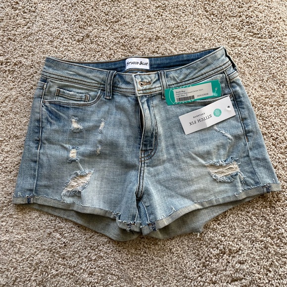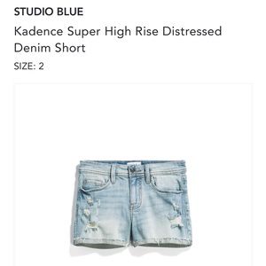 Size 2/26 STUDIO BLUE Kadence Super High Rise Distressed Denim Short light indigo NWT