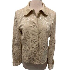 Studio By Liz Claiborne Cream Embossed Short Blazer Jacket 14