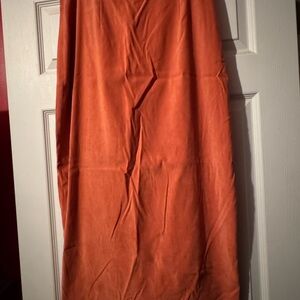 Chic orange skirt set by Studio C. Sleeveless top with front zipper. Matching long skirt. Perfect for stylish outings.