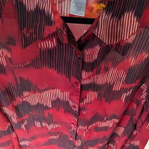 Studio C Plus 16W Abstract Long Tunic, Shirt, Blouse, Button Front Red, Black