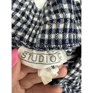 Studio C Womens Skirt Size Medium Blue White Checkered Elastic Back Waist VTG