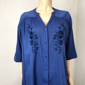 Studio CLIP 3/4 sleeve V-neck button front embroidery /retro/relax/everyday flower T-shirt dress