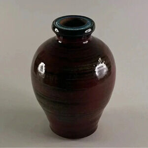 Studio Ceramics Stoneware Pottery Vase Ruby Red Oxblood Glaze 6.5"