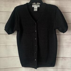 Studio Collection Black Cardigan Sweater Button Up Front Short Sleeve Size M