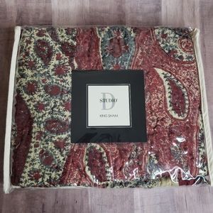 Studio D King Size Sham Pair Paisley Burgundy Blue Cream Floral Marley NWT
