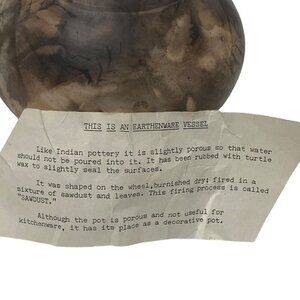Studio Earthenware Pottery Signed M.Borg Round Vase 4.25" high Brown Leaf Design