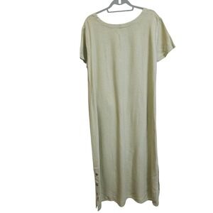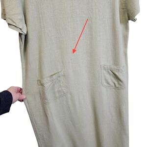 Keywords: Studio Ease, linen blend dress, maxi dress, olive green dress, pocketed dress, button detail, casual dress, womens dress, size 14, summer dress, bohemian, boho chic, linen dress womens