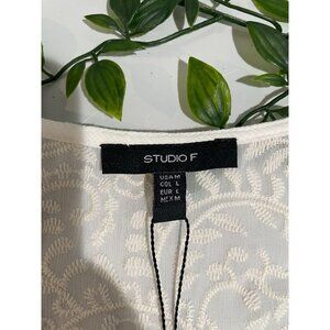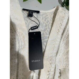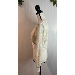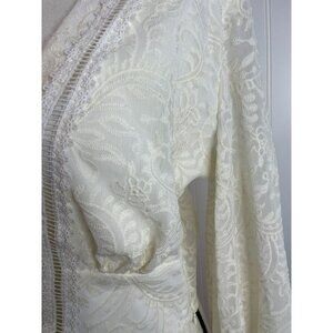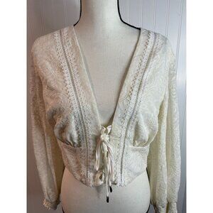 Studio F Ivory Lace Long Sleeve Tie Front Blouse With Embroidered Details Size M