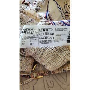 Studio F Puff Sleeve W/ Lace & Paisley Print Blouse Sz M Boho