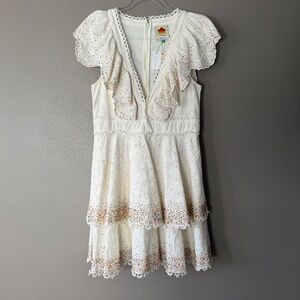 Studio Gem Q Open Front Crochet Sweater Embroidered Lace Trim
