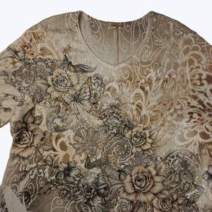 • Studio Gem Q. Women's Tunic style pullover light sweater Floral design