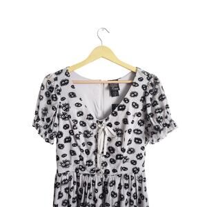 Style: Show your love for Soot Sprites as you go on an adventure with Totoro in this dress! From My Neighbor Totoro, this dress features a tulle layer with an allover print of Soot Sprites, sheer sleeves and lace-up detailing on the bodice. Dress comes lined at the bodice and skirt with a back zipper closure. 100% polyester. Sold out online.