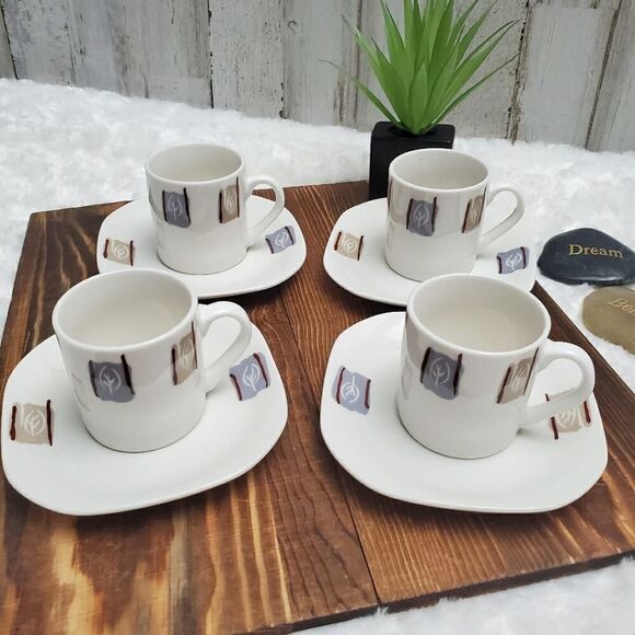 Studio House Porcelain Espresso Demitasse Cups and Saucers. Set of 4