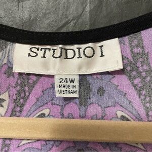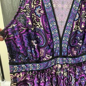 Studio I 24W Purple and Black Paisley Midi Dress Sleeveless Summer Party
