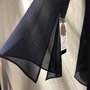 This dress is new with tags. It has no flaws. The shift dress has a built inner lining as well. Sleeves on top are sheer and slip up the sleeve.