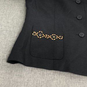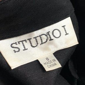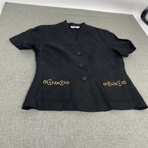 Studio I Black 3 Button Jacket 55% Linen 34% Rayon Short Sleeve Low V-Neck Sz 8