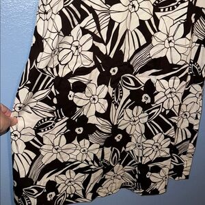 This Studio I dress features a striking black and white floral print, perfect for a wedding guest or cocktail event. The sleeveless design with a sweetheart neckline and midi length offers a chic and elegant look. The bold monochromatic pattern and fitted silhouette make it an ideal choice for a night out.