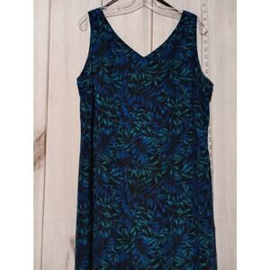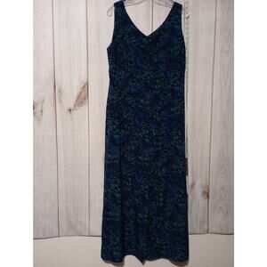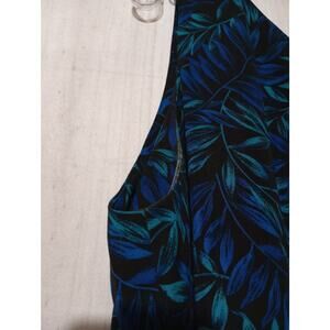 Studio I Dress Womens 18 Blue Black Green Leaf Sleeveless Maxi Tank Formal Poly