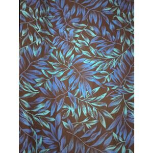 Features an all-over blue and green leafy pattern on a black background.