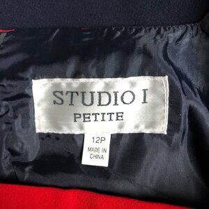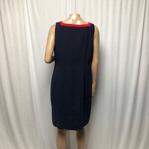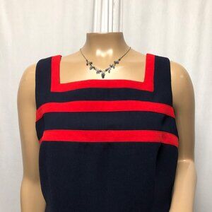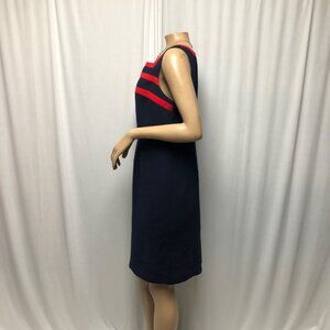 Studio I Dress Womens Size 12P Navy Red Sleeveless Square Neck Office Nautical