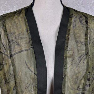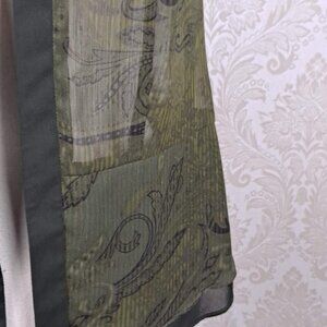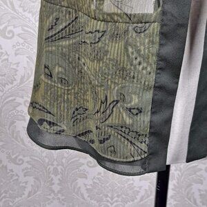 Studio I Size 8 Olive Green Open Front Shirt/Jacket Sheer Stripes Paisley Print