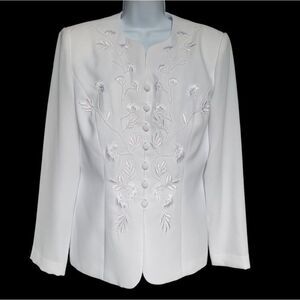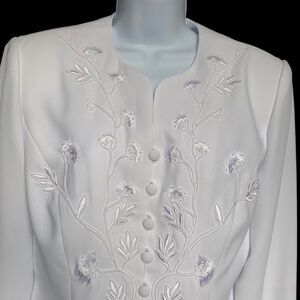Studio I White Blazer with Embroidered Details, Covered Buttons Size 10