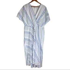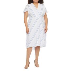 Studio I White And Blue Stripes Short Sleeve V-Neck Dress, Size 14, NWT