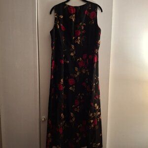 Studio I Petite women's Black and Red Floral sleeveless sheath midi dress. Size is 10P tall. Very feminine and lightweight. Pit to pit measures 18 inches. Length 46 inches - tall.