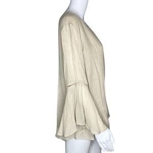 Studio JPR Shirt Womens Medium Beige Bell Sleeve Neutral Minimalist Lagenlook