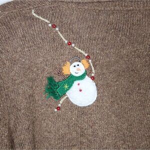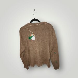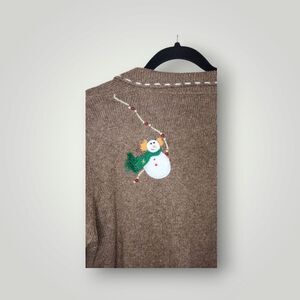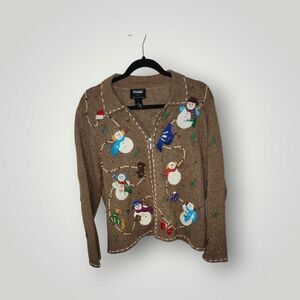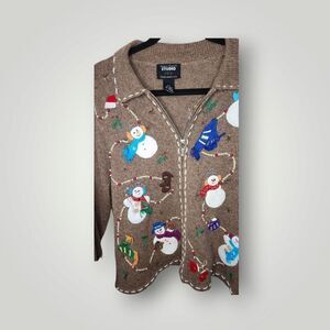 Studio Joy snowman sweater jacket cardigan beaded embroidered size Petite Large