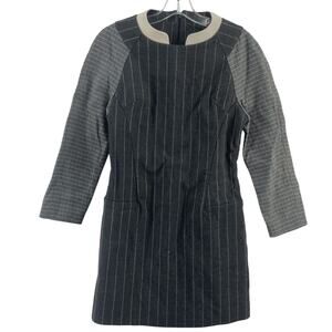 Studio K Gray Pinstripe Grid Shift Dress Lambskin Cotton Blend Womens S Preowned