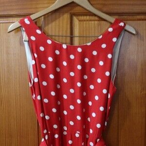 Studio LA Vintage Red & White Polka Dot Belted Pin Up Open Back Dress 10