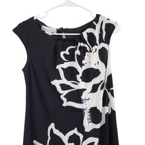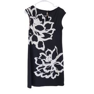 Studio London Times White Black Floral Large Print Flower Shift Dress Size 4