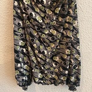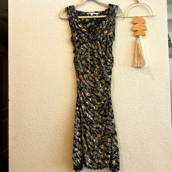 Very flattering form fitting dress from the 90’s in pristine condition. Fits a smaller chest but has stretch!