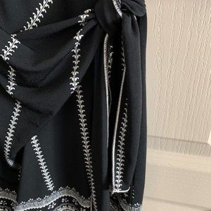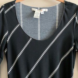 Studio M Size XS Black Faux Wrap Dress 3/4 Sleeve Fluer De Lis Style Print