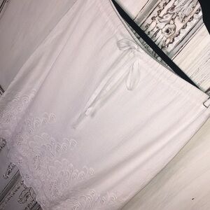 Studio M Summer Cool Cotton Lined White Embroidered Hemline Skirt Size Medium
