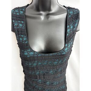 Studio M Teal Black Lace Overlay Dress Size S Date Sexy Y2K 2000s Going Out Mini