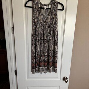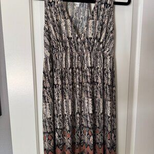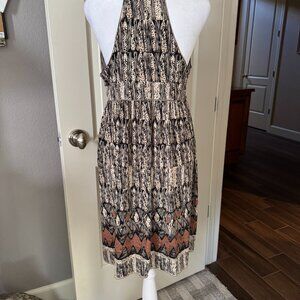 Beautiful lightweight knee length halter dress by Studio M in Size Large. V-neck with empire waist. Flows nicely. Worn once and in perfect shape.