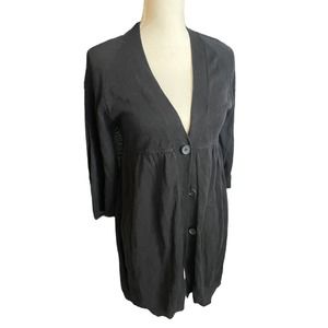 Studio M Womens Button-Up Peplum Cardigan V-Neck 3/4 Sleeve Size XS Black