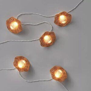 10ct Solar LED Outdoor Orb and Globe String Lights with Plastic Rattan Woven Hoods Clear/Brown